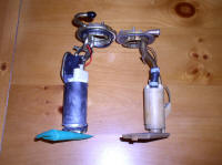 For a fuel pump I used the pump from a 1991 318i. This is an in-tank EFI pump that is a direct replacement for the E21 in-tank pump. As far as I know it was only used on the 1991 model year. Here are some pictures of the 318i EFI pump next to the E21 in-tank pump. The biggest differences are the electrical connector and that the hard lines do not exit the top of the pump in the same locations.
