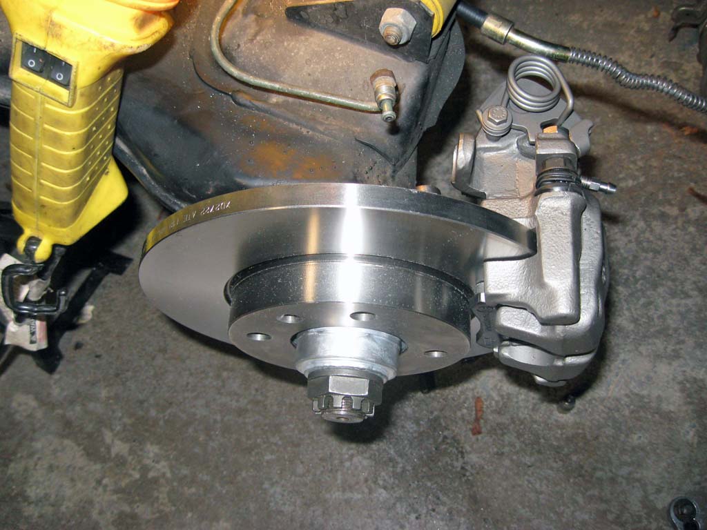 The calipers and pads are from a second generation VW Jetta GLI or Scirocco 16V. The rotors are from a first generation VW Rabbit. The kit includes a set of E21 hubs that have been turned down to fit inside the rotors. The stock emergency brake cables are modified by cutting off the slotted portion on the end and removing the spring. The kit provides an adapter bushing for fitting the stock E21 cable to the VW caliper. The setup appears to work pretty well although I might need to fabricate a crimp-on spacer for the end of the cable. The only other modification I will make to the kit is to add a hold-down to the flexible brake hose that is included with the kit. The hose could potentially contact the rear surface of the rotor. There is a convenient extra hole in the mounting bracket that I plan to use for this purpose. This kit will fit inside stock 13 inch wheels with a little careful alignment of the caliper and maybe some minor grinding to the caliper as well. On my car, the caliper does contact the inside of the stock 13 inch turbine wheel just a little. I could easily fix this but I'm ordering a set of 15inch wheels anyways so I'm not worried about it. Dragging Brakes