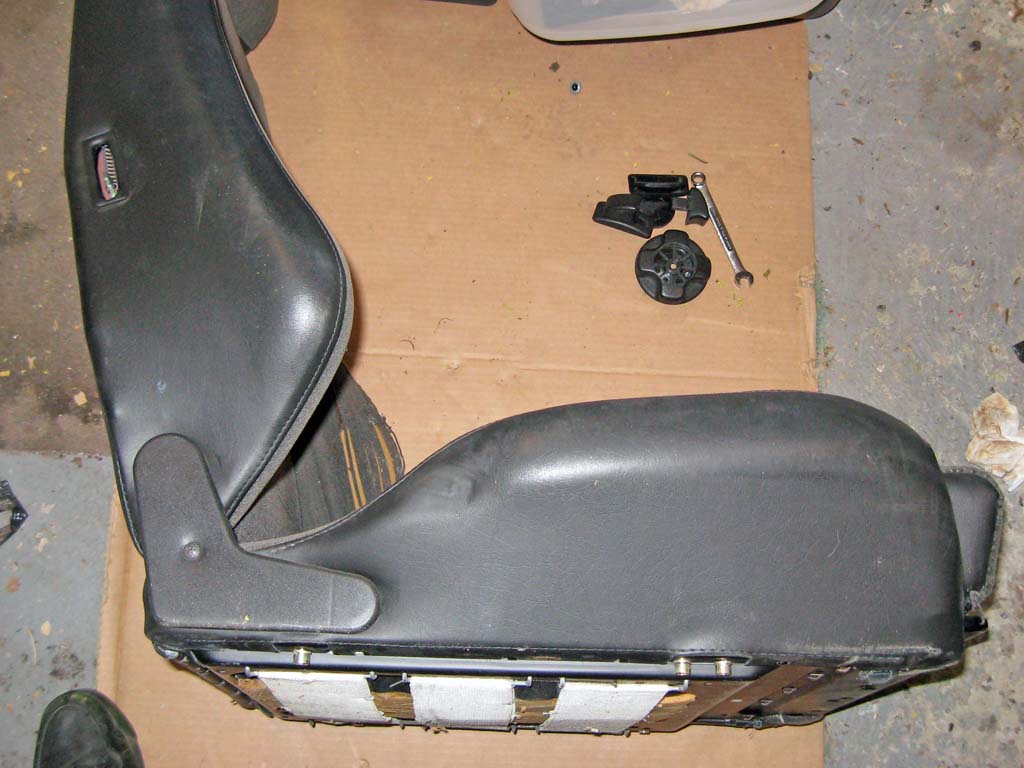 The seat back frame with bolster foam. The foam is glued onto the frame. The left bolster is very worn and soft.