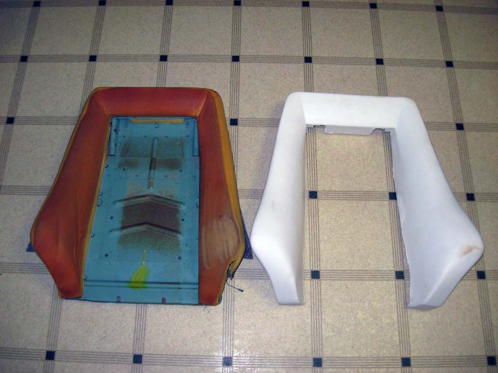There are a few subtle changes that need to be made to get the new foam to fit the backrest frame. The slot in the lower sides needs to be trimmed a little and a slot needs to be added across the top of the foam.