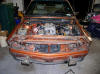 Some pictures of the engine compartment after the engine was removed. These show some of the details of the A/C components as well as the parts around the driver's side inner fender.