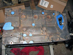 I sent the block, lower timing cover, and rods to my local machine shop to have the required work done. The block was bored out to 92mm to match the pistons. The block was also decked .010 inches to clean up the surface. The lower timing cover was modified to accept the larger S14 front oil seal. Fortunately there was no work required on the rods.